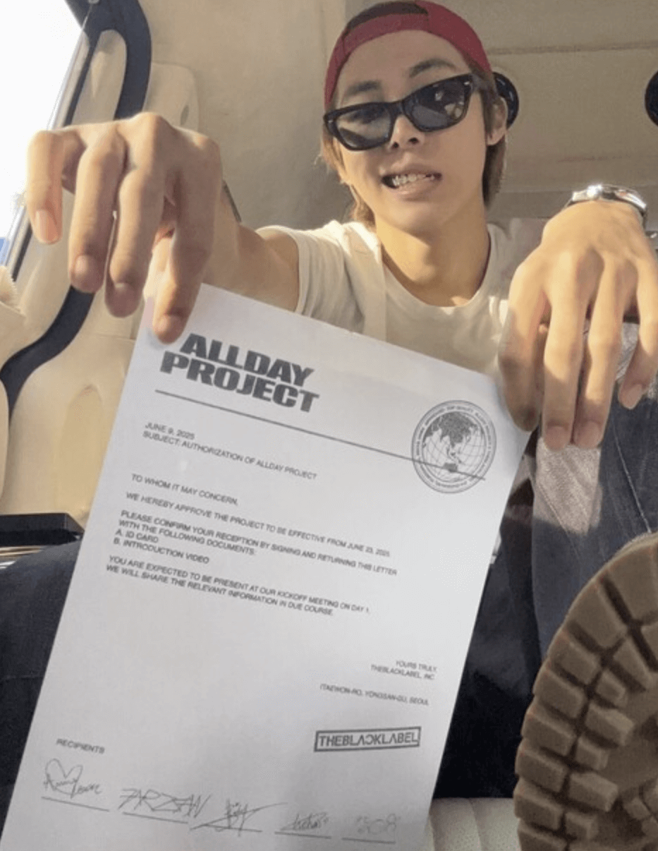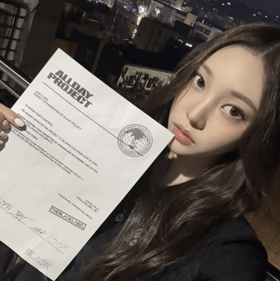 바로 테디가 제작하고, 신세계 정유경 회장 딸 문서윤(애니)이 포함된 혼성 5인조 아이돌 그룹 올데이 프로젝트(ALLDAY PROJECT)입니다.