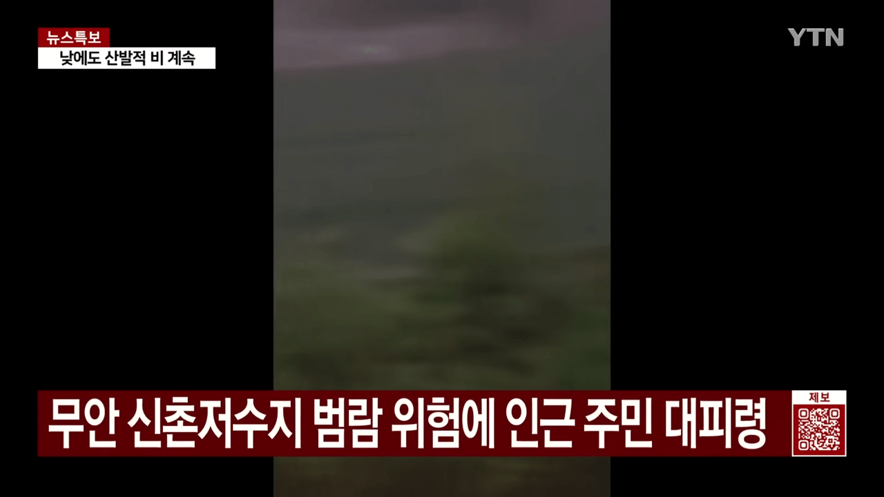 - 현경면/망운면: 무안공항 집중 강우, 신촌저수지 월류 위험, 주민 긴급 대피